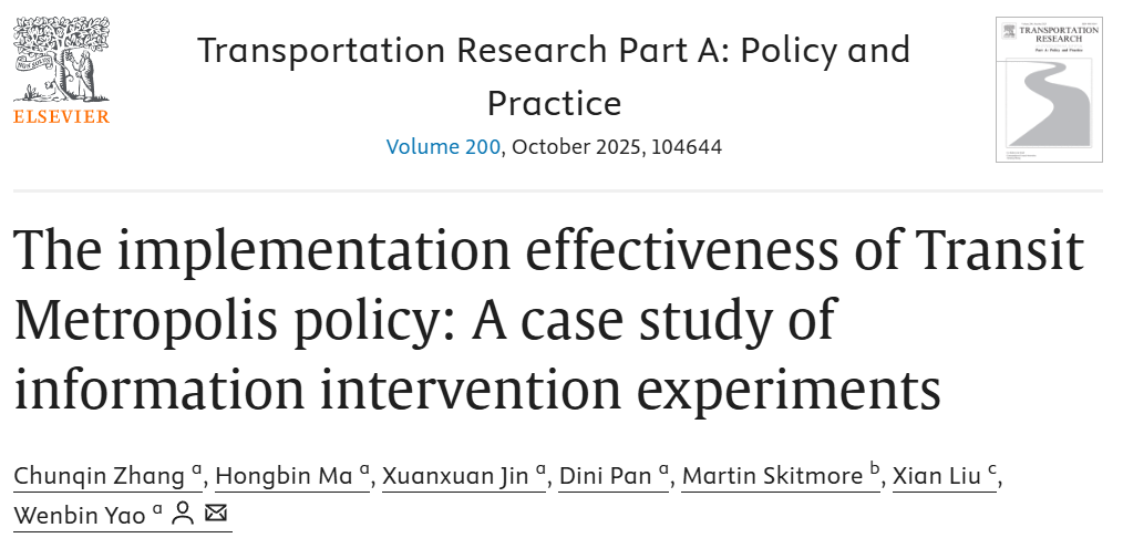 厂长资源 张春勤教师团队今年在Transportation Research Part A: Policy and Practice、Transportation Research Part C: Emerging Technologies、Transportation Research Part D: Transport and Environment、Cities和Transport Policy等交通运输领域权威期刊(中国科学院一区TOP)已发表论文6篇,研究内容涵盖交通政策分析与优化、绿色出行行为分析与多模式交通优化等,以实证和模型分析相结合的方式,为城市交通治理、低碳转型和...