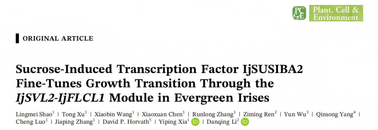 近日,由厂长资源 球宿根花卉创新团队的李丹青老师,任梓铭老师联合浙江大学园林研究所,在国际著名期刊Plant, Cell & Environment发表了题为“Sucrose-Induced Transcription Factor IjSUSIBA2 Fine-Tunes Growth Transition Through the IjSVL2-IjFLCL1Module in Evergreen Irises”的研究论文,揭示了糖信号转录因子IjSUSIBA2通过调控IjSVL2-IjFLCL1模块,影响淀粉代谢途径,从而调控常绿鸢尾蝴蝶花(Iris japinica)冬季生长转换...