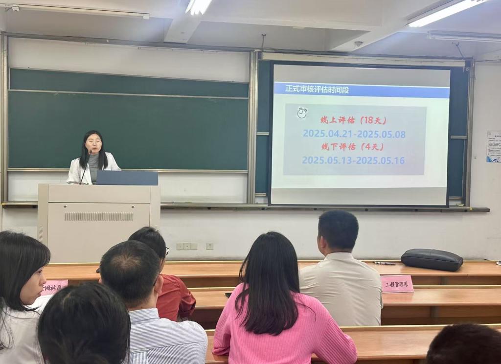 副院长张春勤详细解读了本次审核评估的总体安排,明确了线上评估和入校评估两个阶段学院承担的任务和工作安排,并对重点事项进行强调。