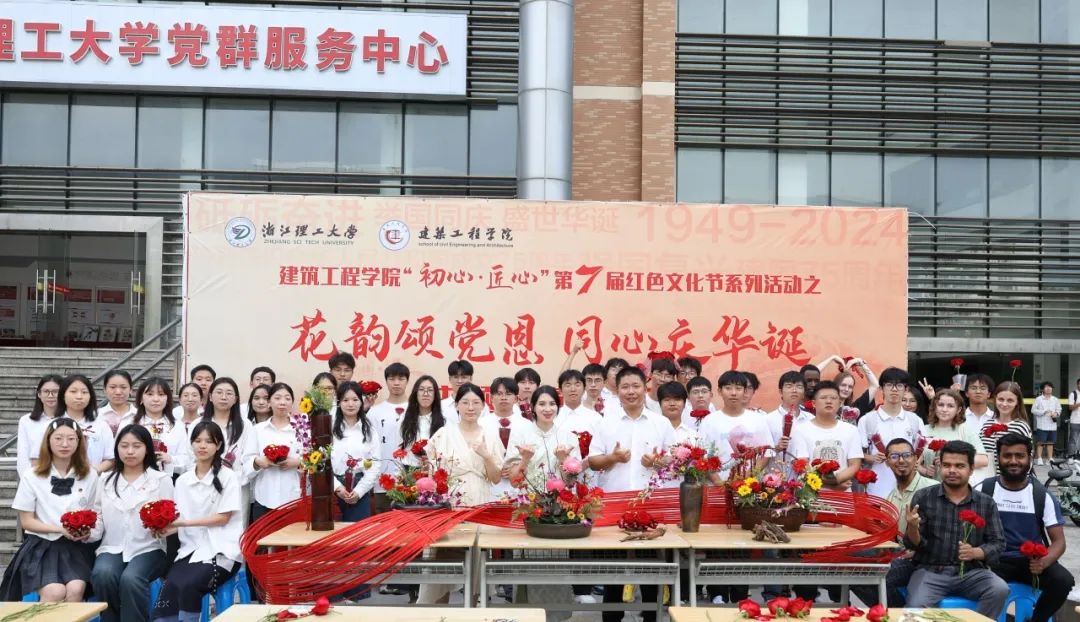 “初心·匠心”第七届红色文化节之“新中国标志性建筑”红色模型展暨杜鹃园揭牌仪式在党群服务中心隆重举行。浙江中枢能源管理有限公司总经理斯浙柯、校党委组织部副部长韩晶晶、教务处副处长徐映红、公共事务管理处副处长郑敏华、学院党委书记李娜、副院长杨博及百余名师生党员代表参加活动。仪式由学院党委副书记郑磊主持。