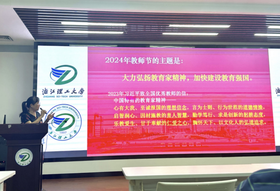 活动二:召开师德师风教育“开学第一课”。9月10日,学院召开教职工大会,集体学习了《中共中央 国务院关于弘扬教育家精神加强新时代高素质专业化教师队伍建设的意见》精神。会议倡导,全体教职工大力弘扬教育家精神,牢固树立师德师风第一标准,以心育心、以德育德,在全院形成自觉践行良好师德、维护良好师风学风的育人环境。