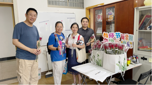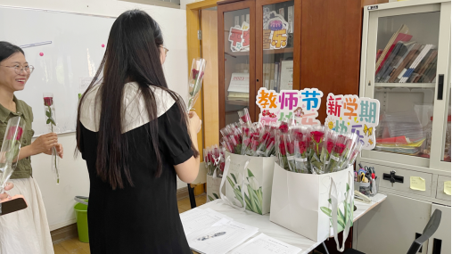 活动一:学院为每位老师敬献鲜花。一朵朵鲜花承载着学院对老师们的深深感谢、祝福与敬意。老师们纷纷表示惊喜,以愉悦心情和饱满的状态迈入新学期。