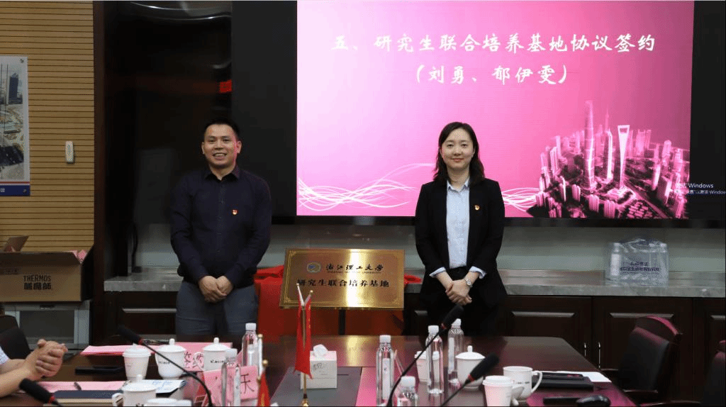 徐辉向企业介绍了学校和学院的教学、科研和人才培养情况等。随后,郑磊、郁伊雯分别代表校企双方签订“党建联建”协议书,李娜、郁伊雯共同揭牌。刘勇与郁伊雯签订“研究生联合培养”协议书,并为联合培养基地授牌。