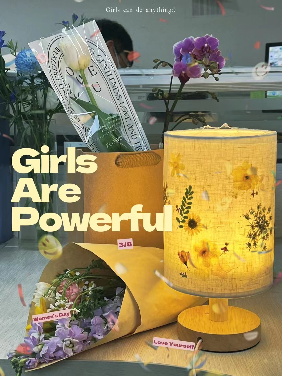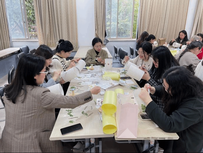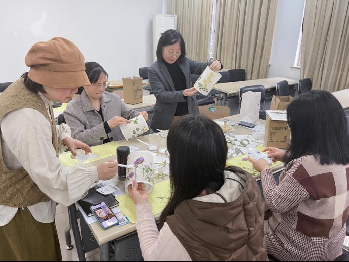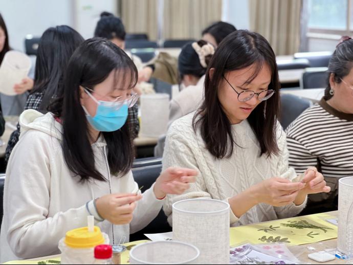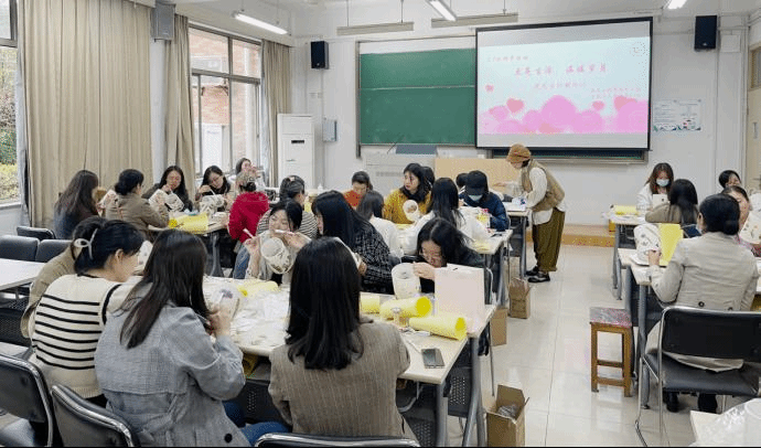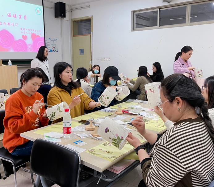 分工会于3月8日在7号楼121室开展了“点亮生活,温暖岁月”主题花艺台灯DIY活动,本次活动吸引了近40位女教师报名参加。