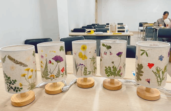 活动现场,指导老师首先向大家讲解了台灯压花的制作方法和注意事项。在领取台灯和选定心仪装饰花材后,大家纷纷迫不及待地开始尝试。从构思到平面构图,再刷胶、贴花、修改打磨……如同雕琢艺术品一般,老师们认真装饰着自己手里的台灯,经过一道道工序,“私人订制”的花艺台灯惊艳出炉。