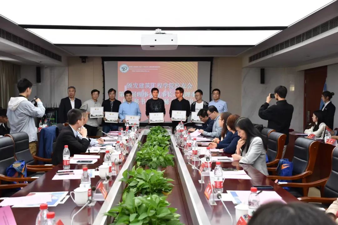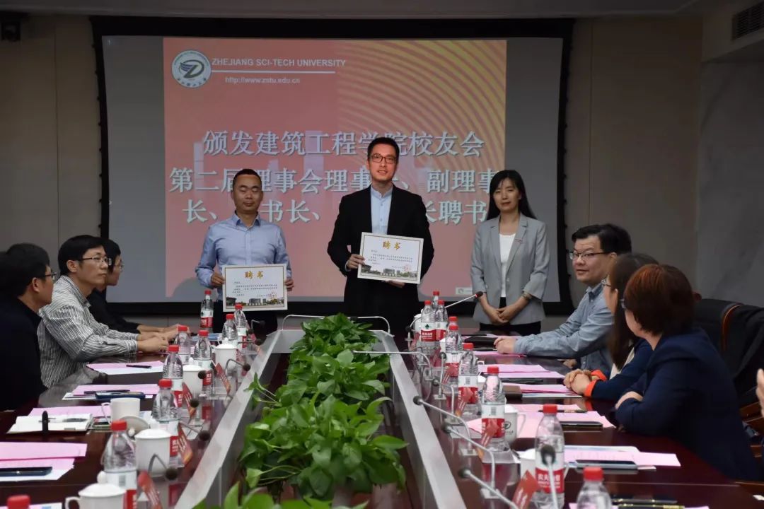 校友会第二届理事会理事建议名单以及理事长、副理事长、秘书长、副秘书长建议名单。与会领导为理事长、秘书长、副理事长、副秘书长颁发聘书,并举行建工校友会会旗交接仪式。