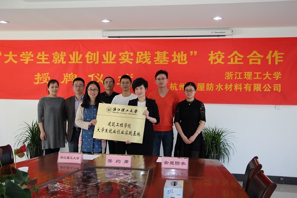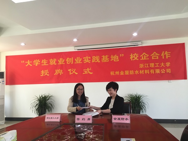 学院和杭州金屋防水材料有限公司签订了大学生就业创业实践基地合作协议,并进行了授牌仪式。朱晓晓对母校的建设情况表示密切的关注,并时刻准备好为母校和学院建设奉献力量。双方深入探讨了校企合作的开展。