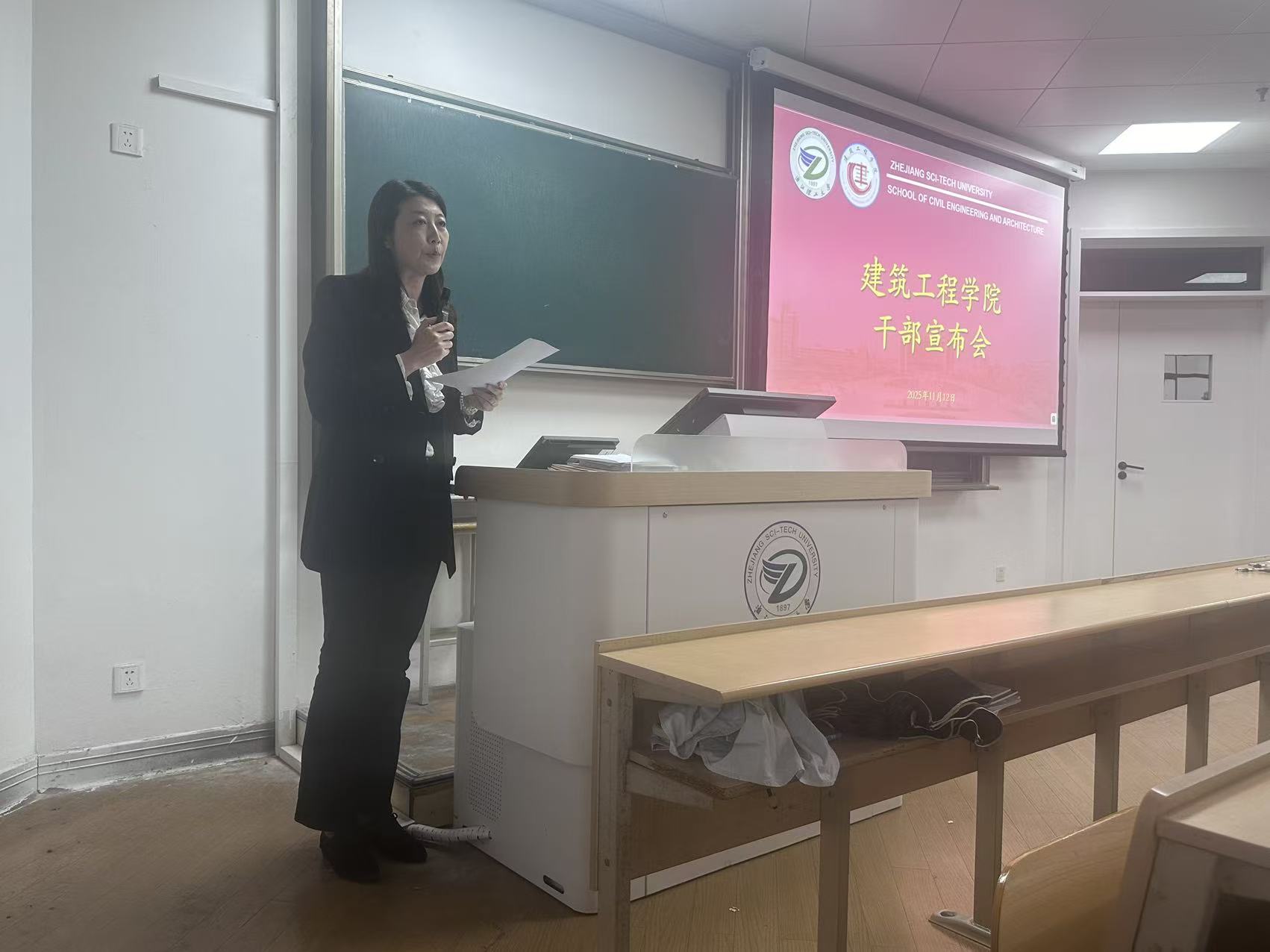 顾晓强同志作表态发言,感谢组织信任与培养。他表示将尽快进入新角色,恪尽职守,团结班子成员和全体教职工,聚焦立德树人根本任务,强化学科建设与科研创新,全力推动学院各项事业高质量发展。