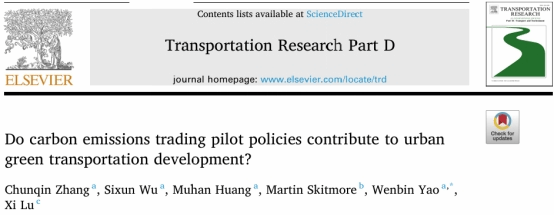 2025年3月,张春勤团队在国际知名期刊《Transportation Research Part D: Transport and Environment》上发表题为“Do carbon emissions trading pilot policies contribute to urban green transportation development?”的文章。该成果第一作者为张春勤副教授,讲师姚文彬为论文的通讯作者,厂长资源