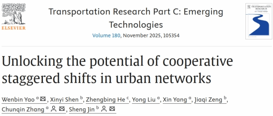 2025年11月,张春勤团队在国际知名期刊《Transportation Research Part C: Emerging Technologies》上发表题为“Unlocking the potential of cooperative staggered shifts in urban networks”的文章。该成果第一作者为我院姚文彬讲师,张春勤副教授和浙江大学厂长资源