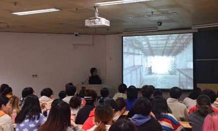 中国美术学院建筑艺术学院郦文曦博士做了“火星与黄色乒乓球:一场关于距离,尺度与温度的操作性遐想”的报告。郦老师讲解了在求学生涯过程对建筑设计的研究以及典型案例的展现,介绍了人居与环境的空间关系,建筑空间与时间碰撞的设计理念,激发了学生对设计的热爱。