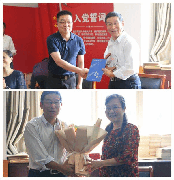 吕超代表建环系为姜老师送上写有“建环四十载 桃李万树春”的纪念牌。学院执行院长俞峰向姜老师送上学院荣休纪念牌和荣休纪念册,学院党委书记李娜为姜坪老师献上鲜花。