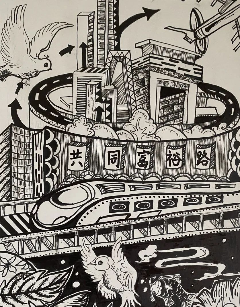 中国特色社会主义新时代是“全国各族人民团结奋斗、不断创造美好生活、逐步实现全体人民共同富裕的时代”。为深入学习贯彻省第十五次党代会精神,建筑学第二学生党支部以共同富裕为主题开展“我家乡的共富愿景”手绘活动,支部成员发挥专业特长,用画笔表达青年独有的活力和色彩,奋力推进中国特色社会主义共同富裕先行和省域现代化先行。
