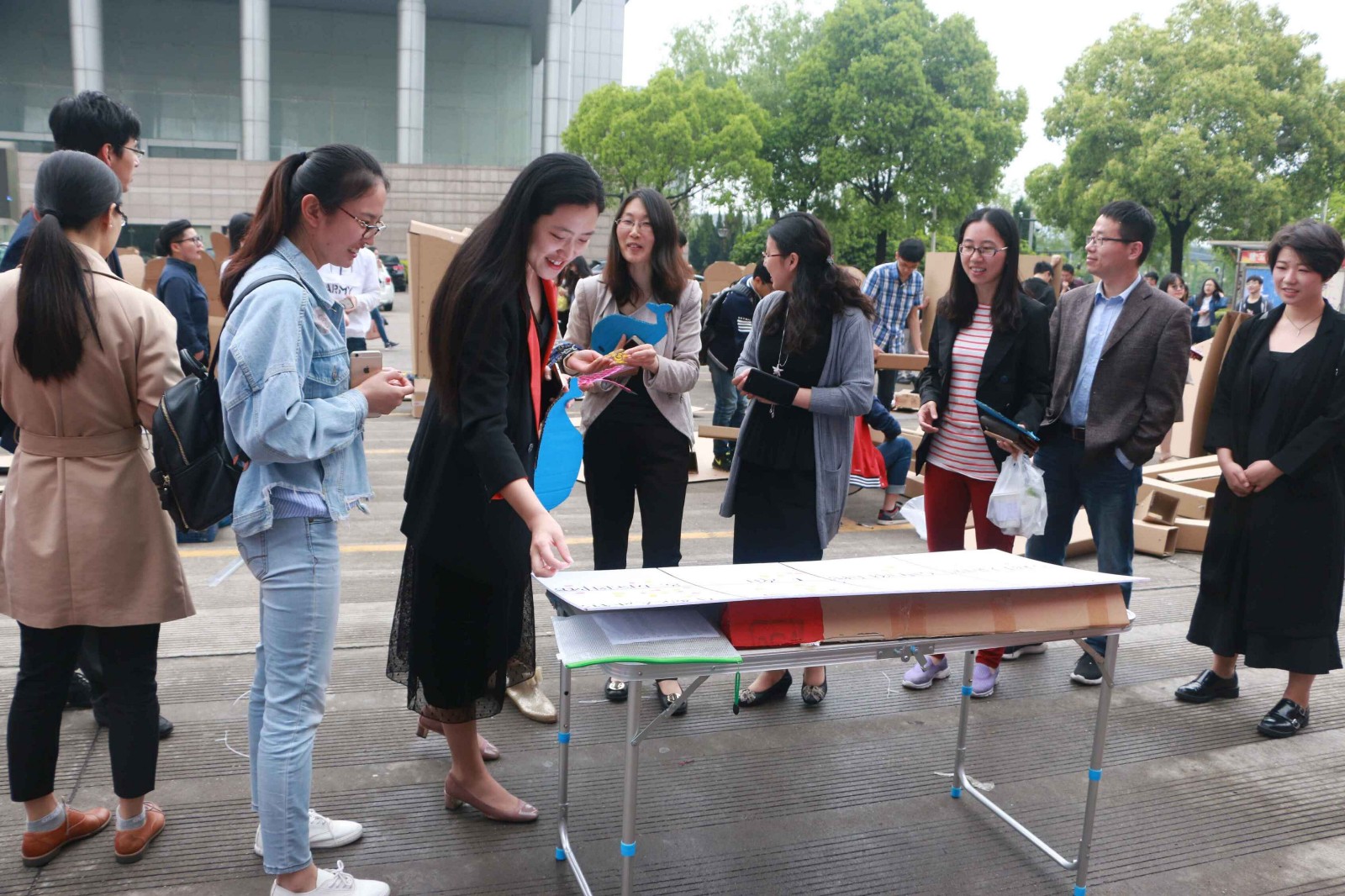 在入围决赛的8支团队中,无不展现出各自组的动手能力与团队精神,即使受到了天气条件的影响,但我们依然看到八组的大作成功展现。大赛制作的模型在今天的校内展出后,将会于5月在宝龙广场再次展出,让校外的居民群众感受到当代大学生的创意与浓厚的文化氛围。因纸板模型的简易拆搭,模型材料在展出后可拆卸,废物再利用,循环往复以致节能。