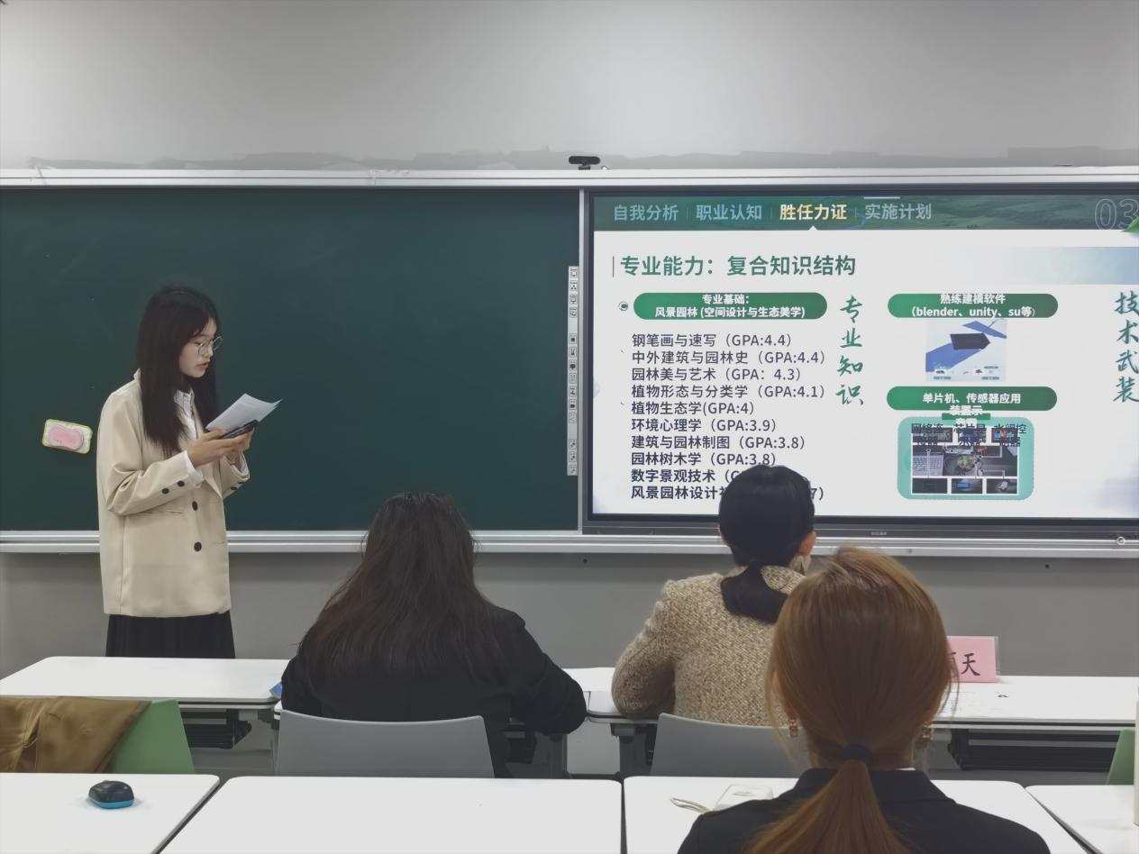 大赛特邀学院党委副书记兼纪委书记朱何璇老师、学工办主任刘濛怡老师、23级辅导员伍硕天老师组成专业评审团。三位评委全程认真聆听,从职业目标适配性、规划逻辑科学性、行动路径可行性等维度,为每位选手进行细致点评,让现场学子深受启发。